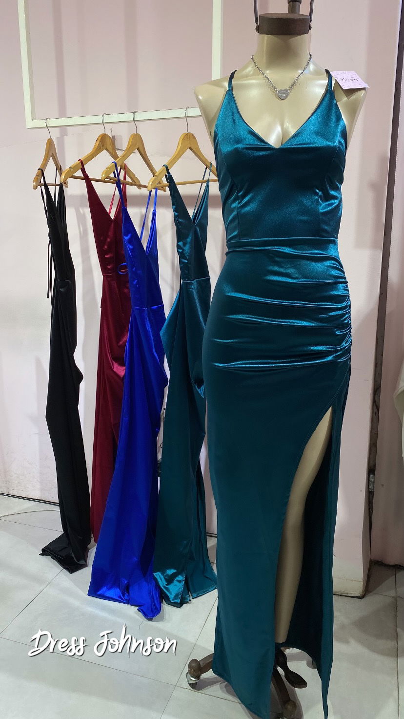Vestido satinado cuerpo elastizado.
