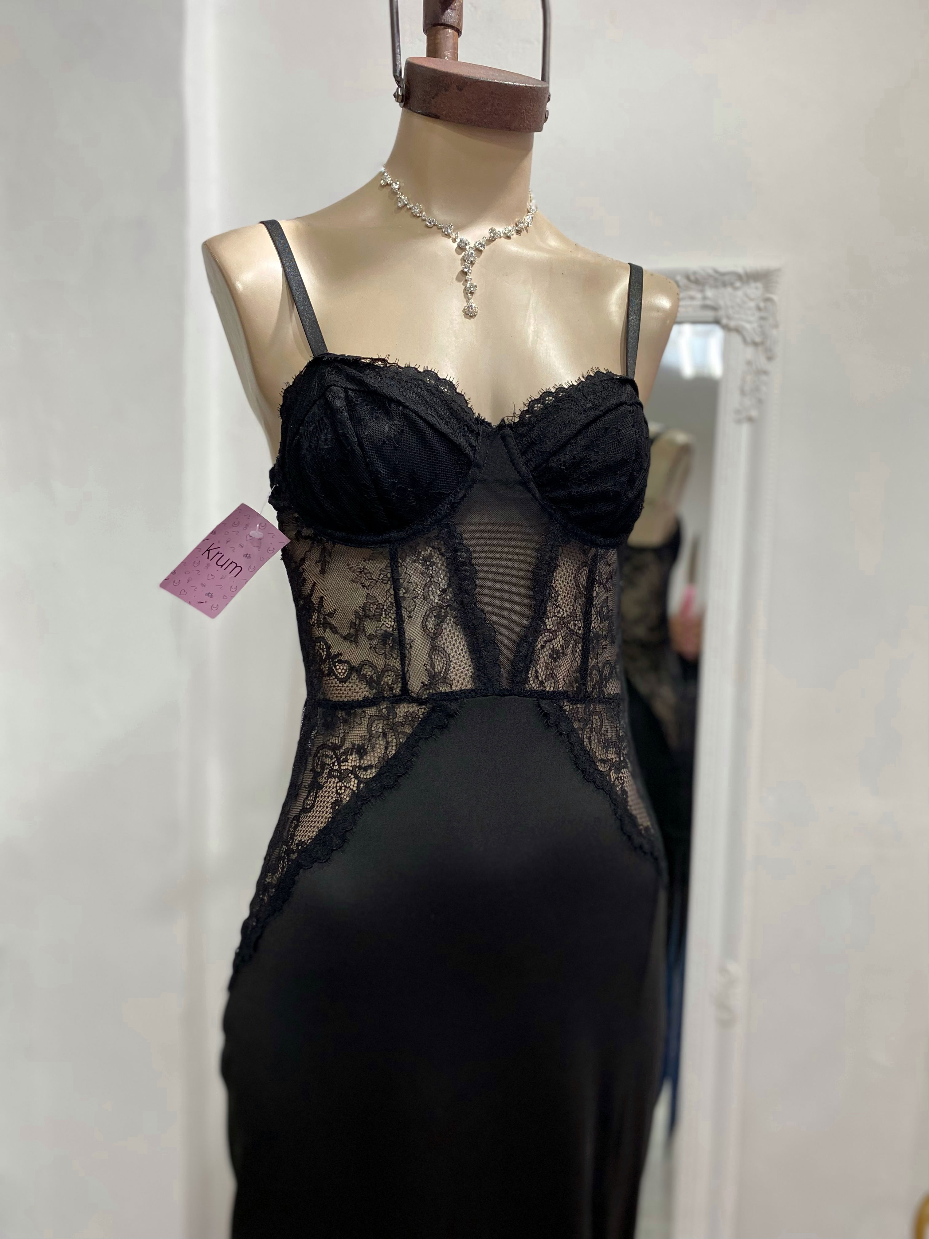 Vestido cuerpo elastizado, con detalles de encaje y copa con aros.