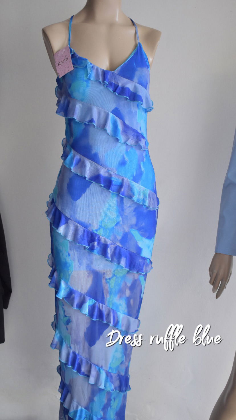 Vestido de microtul elastizado con breteles en la espalda regulables.