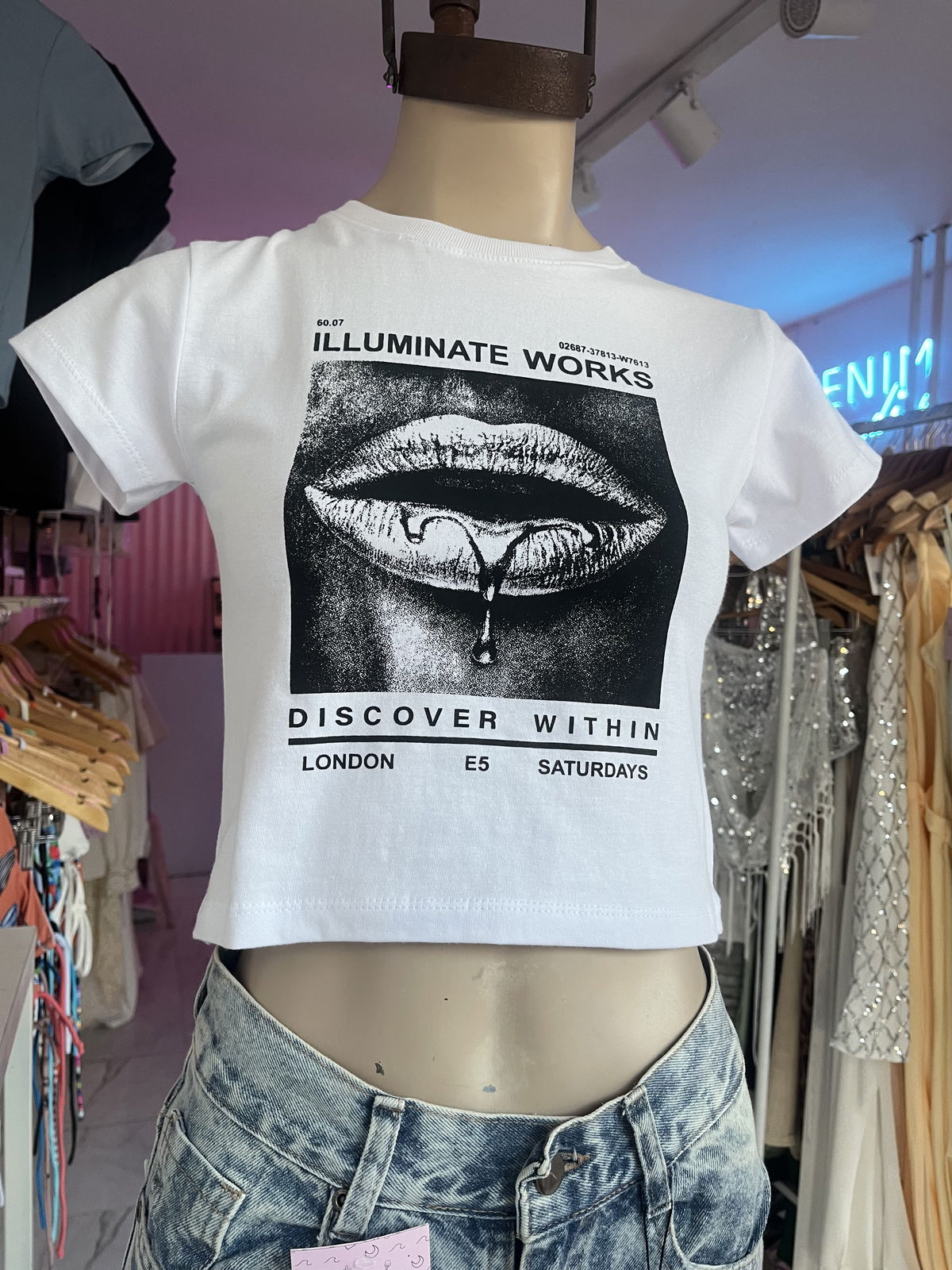 Remera corta algodón con elastano. Largo 42cm. Hasta talle 95 de busto.