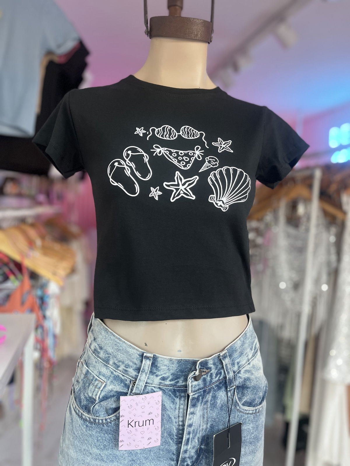 Remera corta algodón con elastano. Largo 42cm. Hasta talle 95 de busto. OFERTA SOLO EN TRANSFERENCIA.