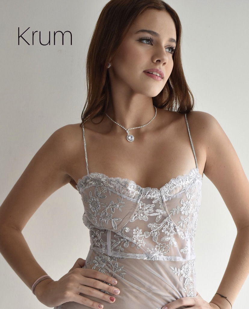 De tul bordado con forreria en contratono. Breteles de strass premium