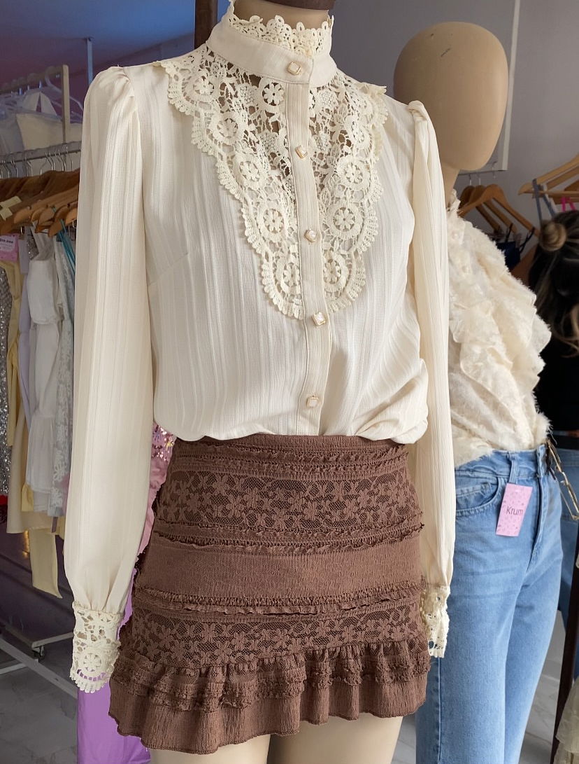 Camisa color albaricoque. Con guipiur. Talles S/M y M/L. Especificar en notas del pedido talle.