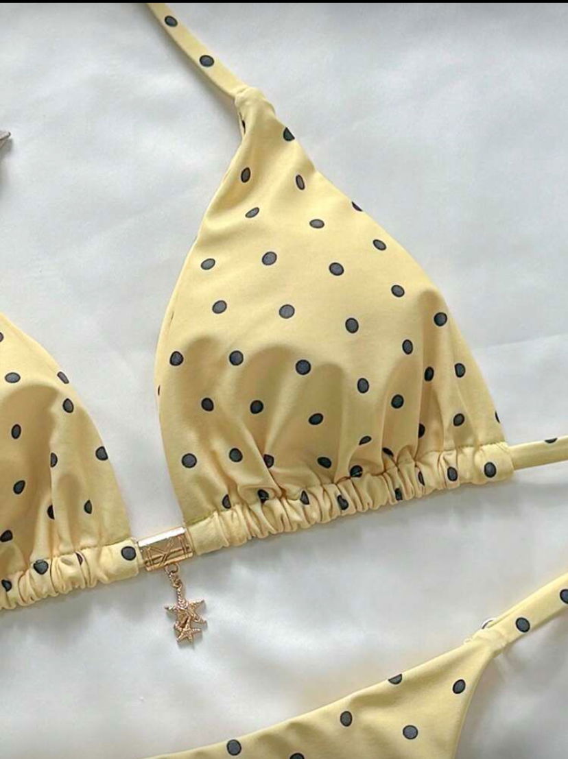 Bikini amarilla con lunares. Avio en el corpiño. Talle S/M
