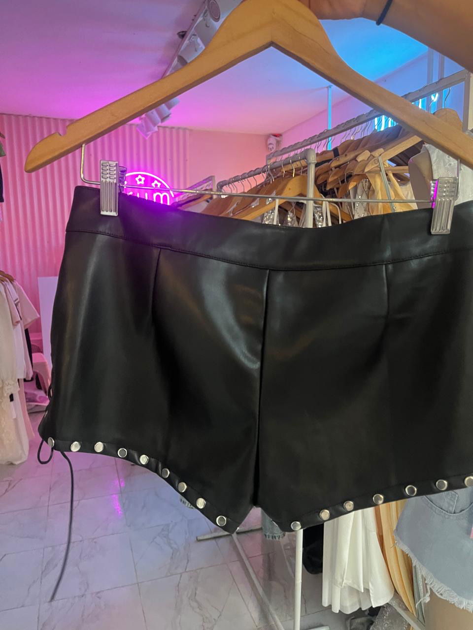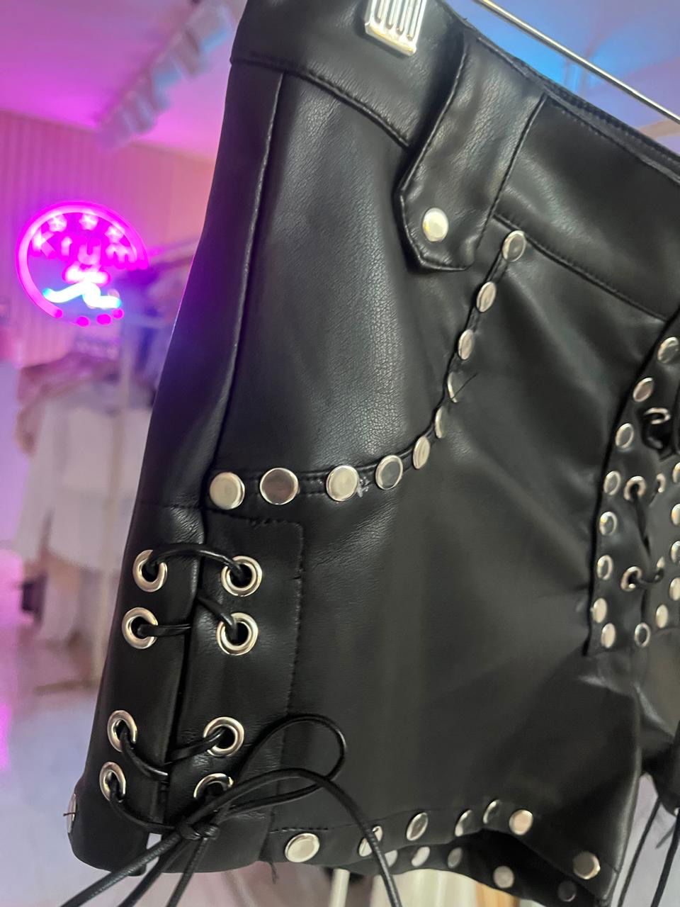Short cuerina con tachas. Importado.