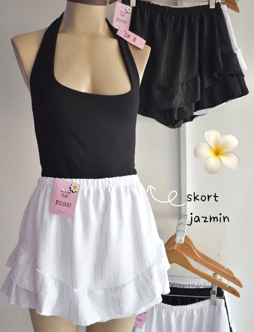 Short pollera con pequeños brillitos. Talle unico. Elastico en la cintura abarca de M a L.
