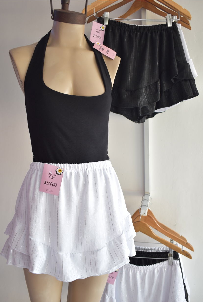 Short pollera con brillitos. Tiene elastico en la cintura. Abarca talle M a L.