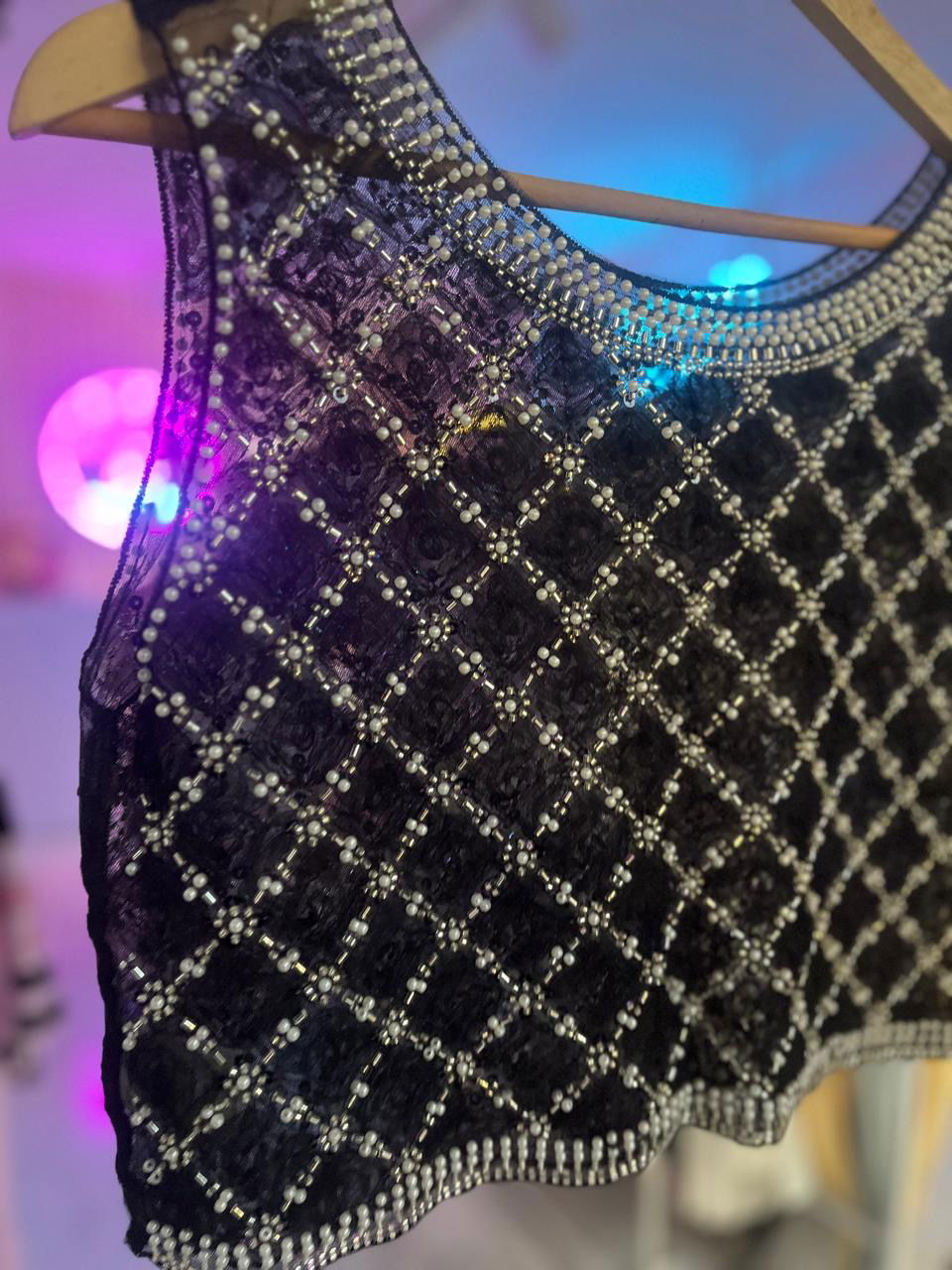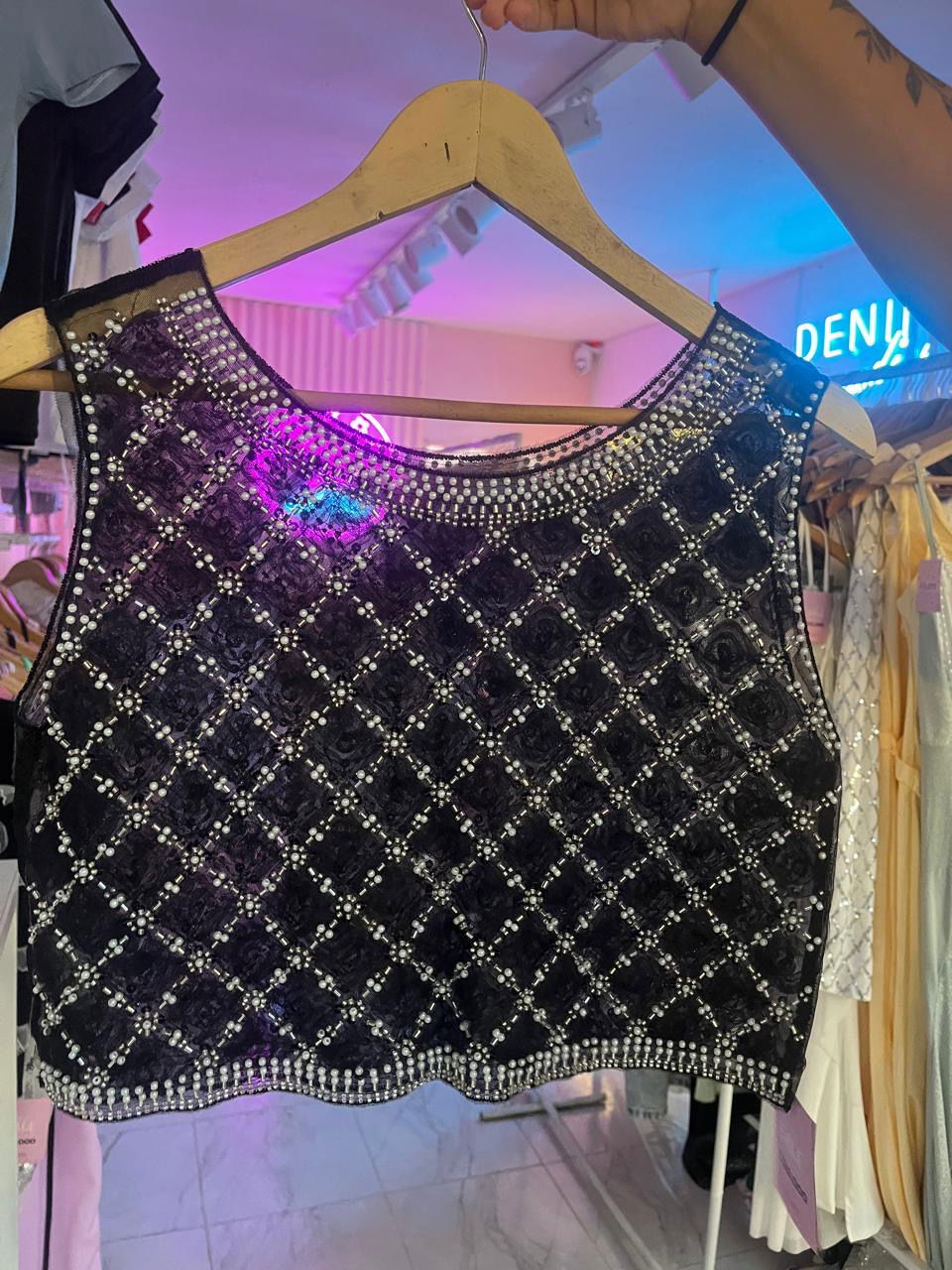 Top bordado con canutillos.