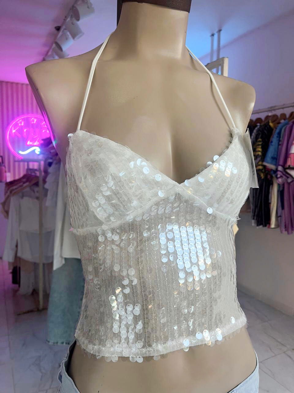Top lentejuelas Frutiger.