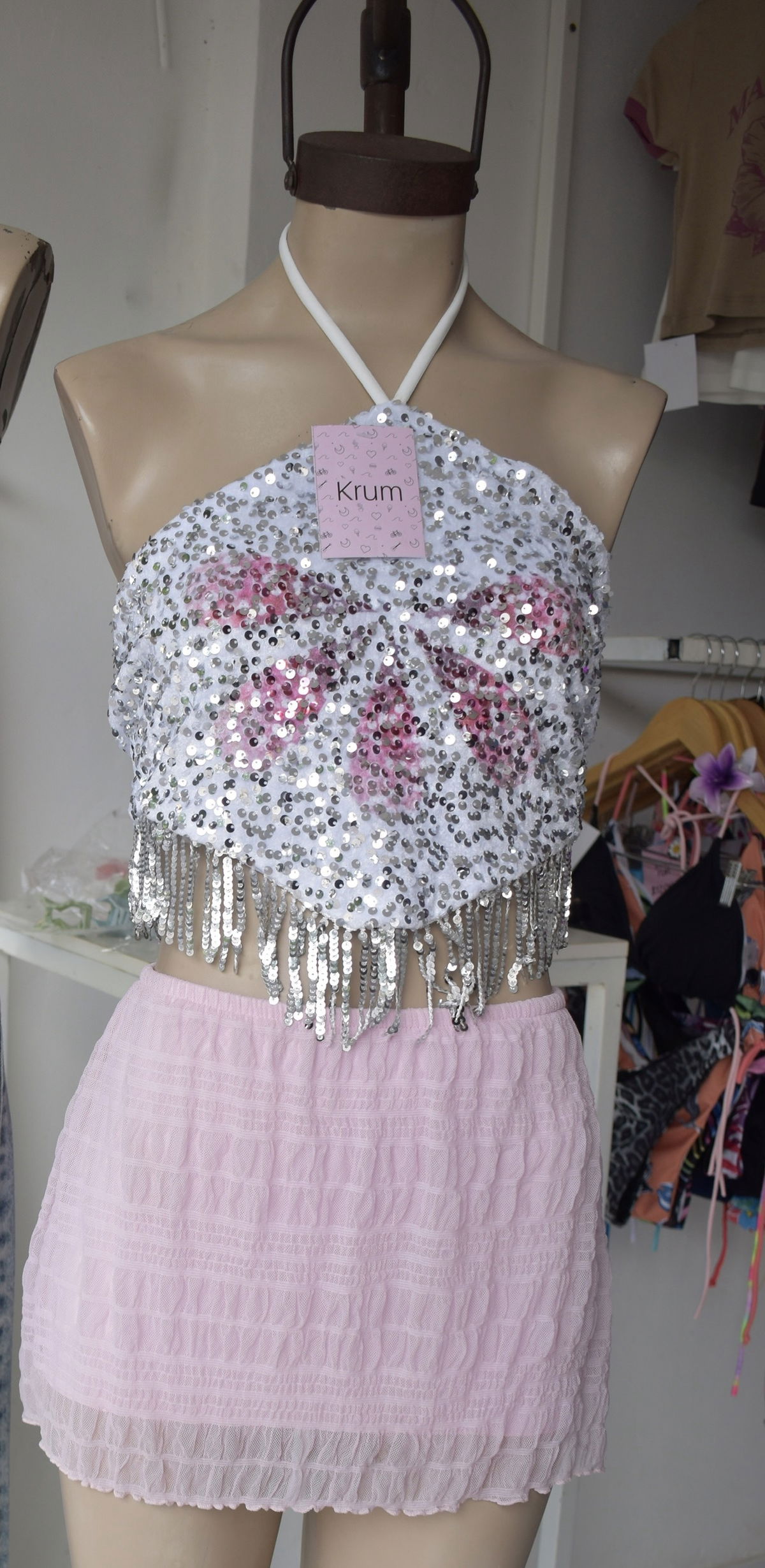 Top de lentejuelas. Cuello halter. Espalda para atar.