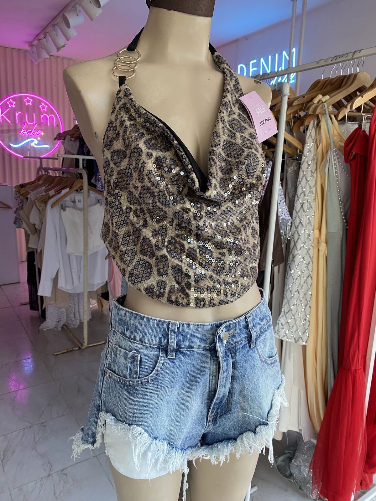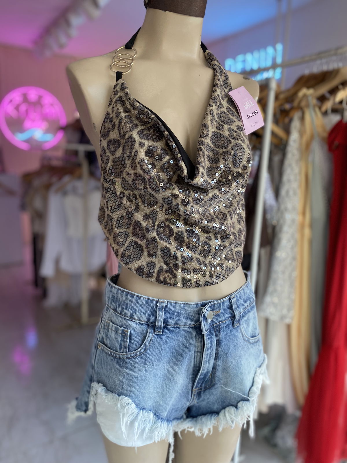 Top buche de lentejuelas. Cuello y espalda para atar.